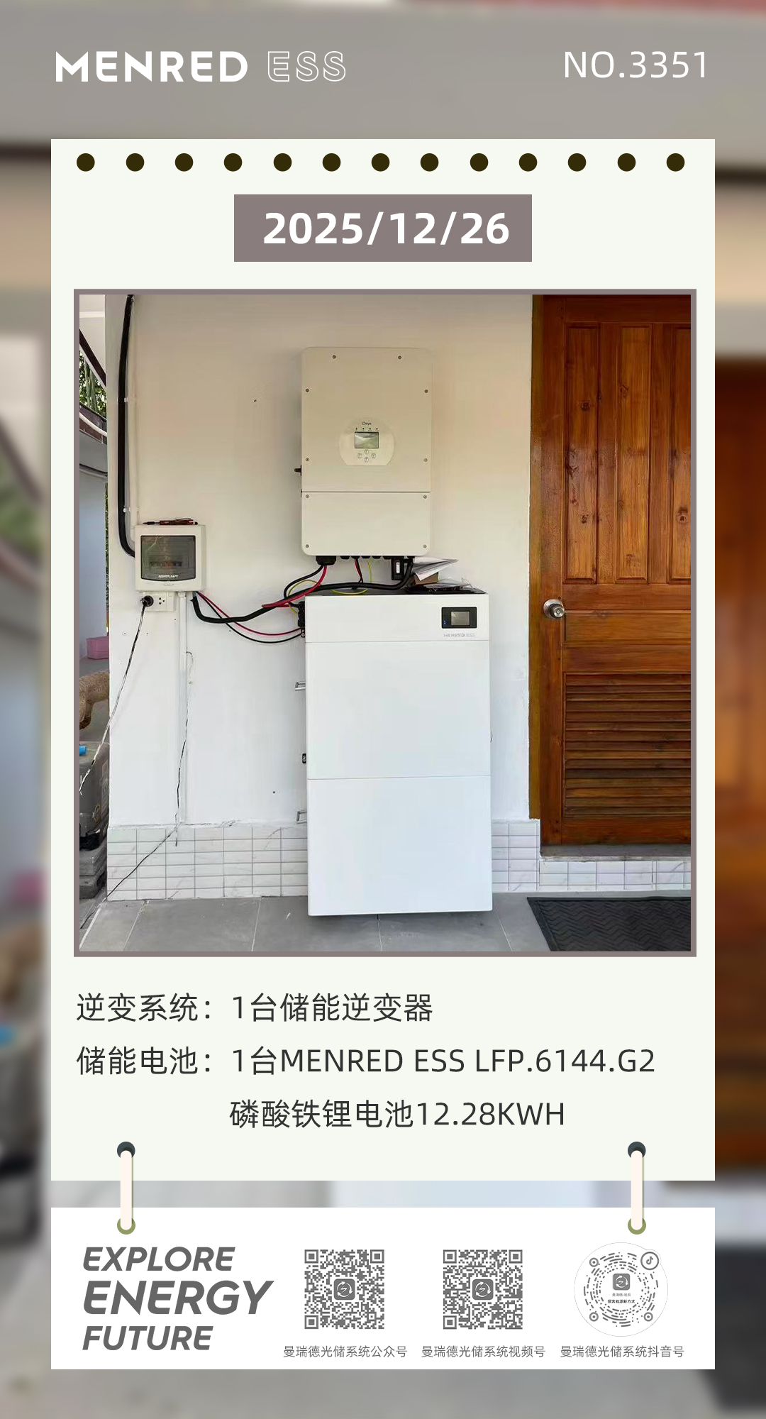 “ ” 圣诞节快乐!曼瑞德光储系统,为您的家庭带来绿色能源的奇迹。1台逆变器+5.12K...